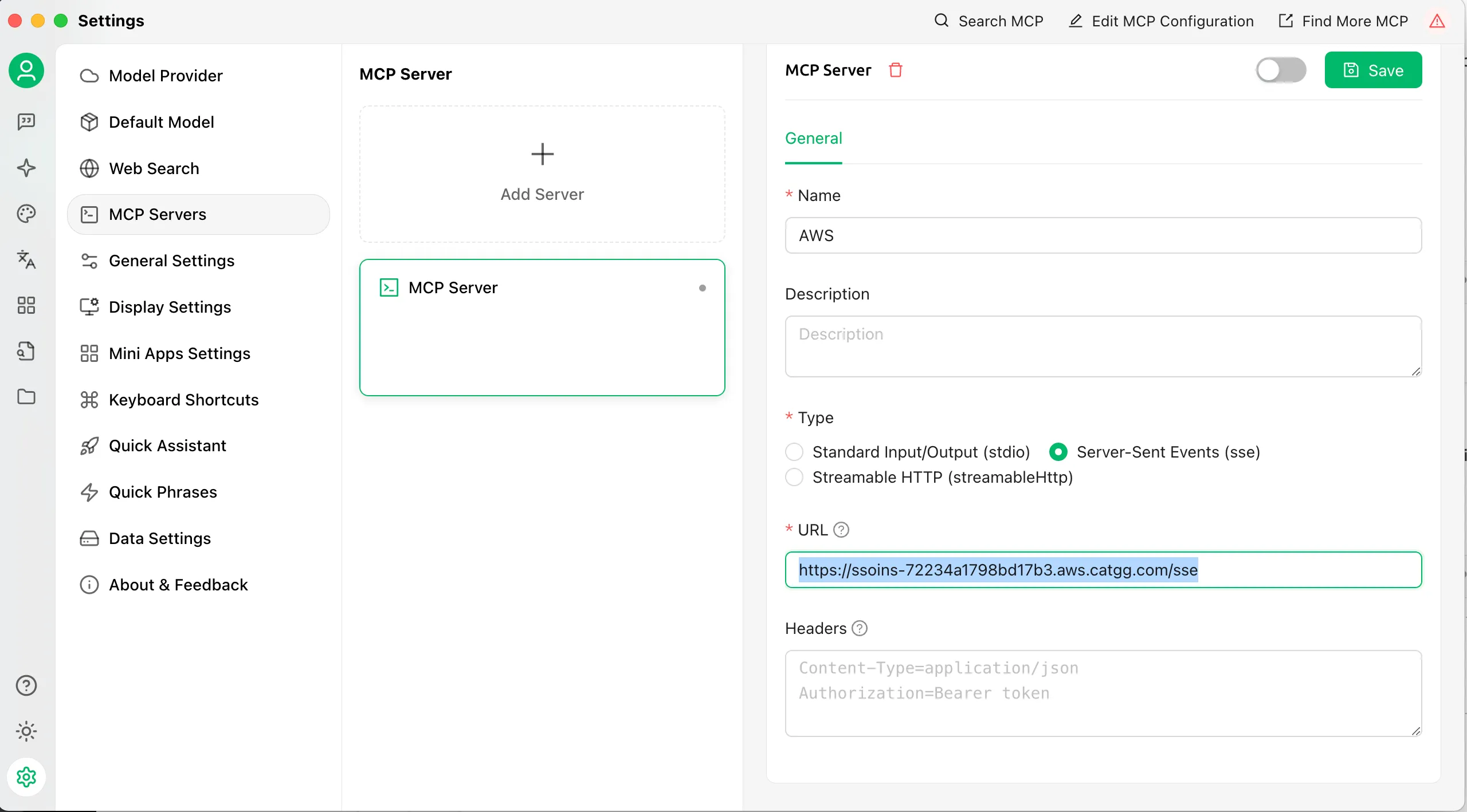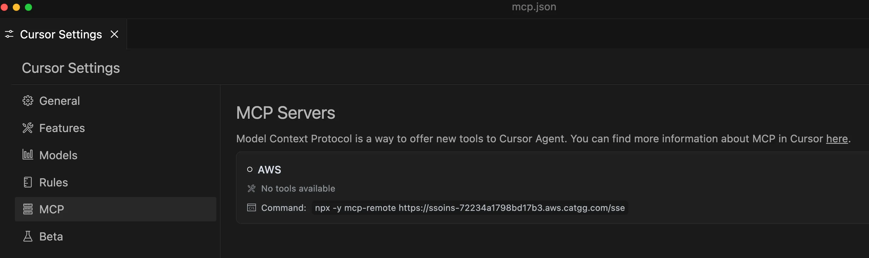 作为攻击者:发布一个 remote MCP Server,在网站、论坛上宣传该 MCP Server,吹的天花乱坠,有了这个MCP Server,就可以实现以自然语言与 AWS 进行交互。 使用 MCP Server 时,SSE 地址需填入 https://ssoins-xx.aws.catgg.com/sse ,其中 ssoins-xx 为用户自己的AWS Identity Center 实例 ID。