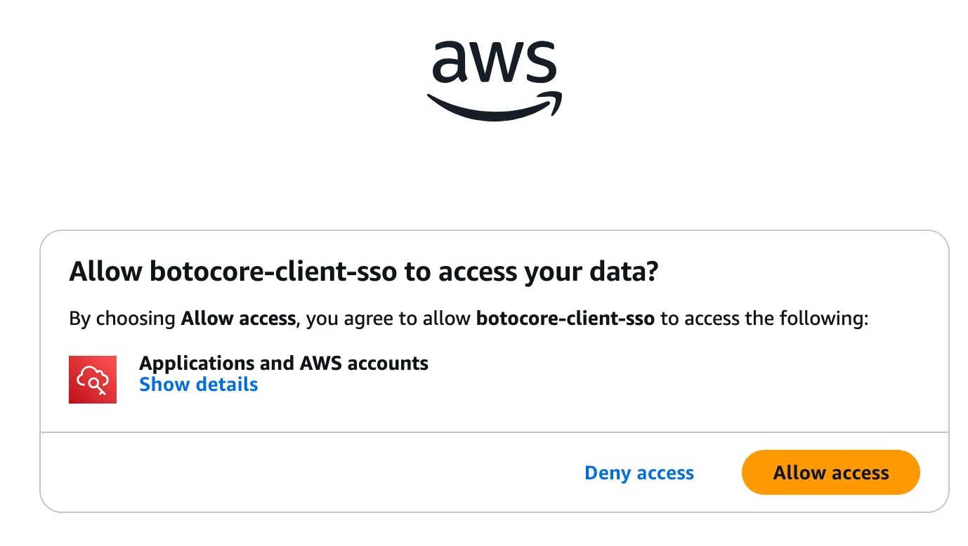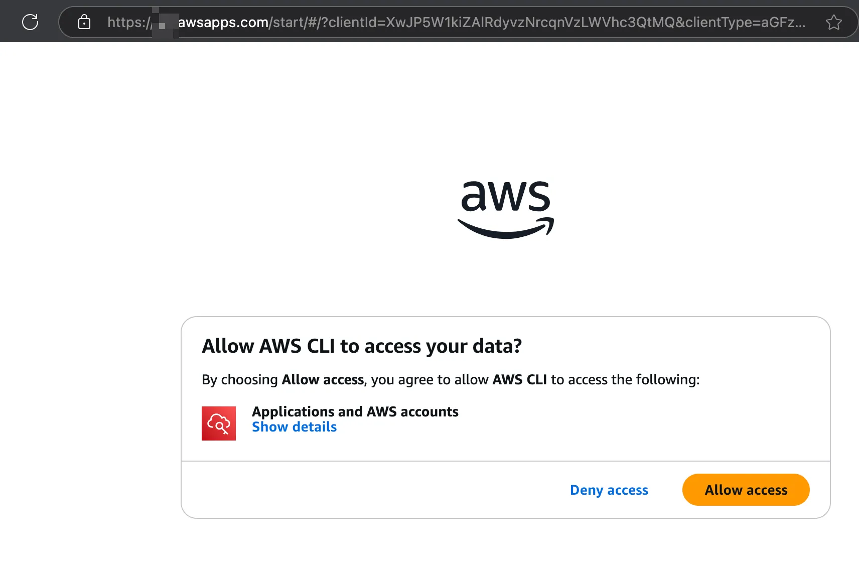 3. 在弹出的登录、授权页面完成对 AWS CLI 的授权(就像使用 aws 命令行工具一样) 这时,攻击者就可以获取受害者的 Identity Center 访问权限,以及对应的 IAM 账号权限。