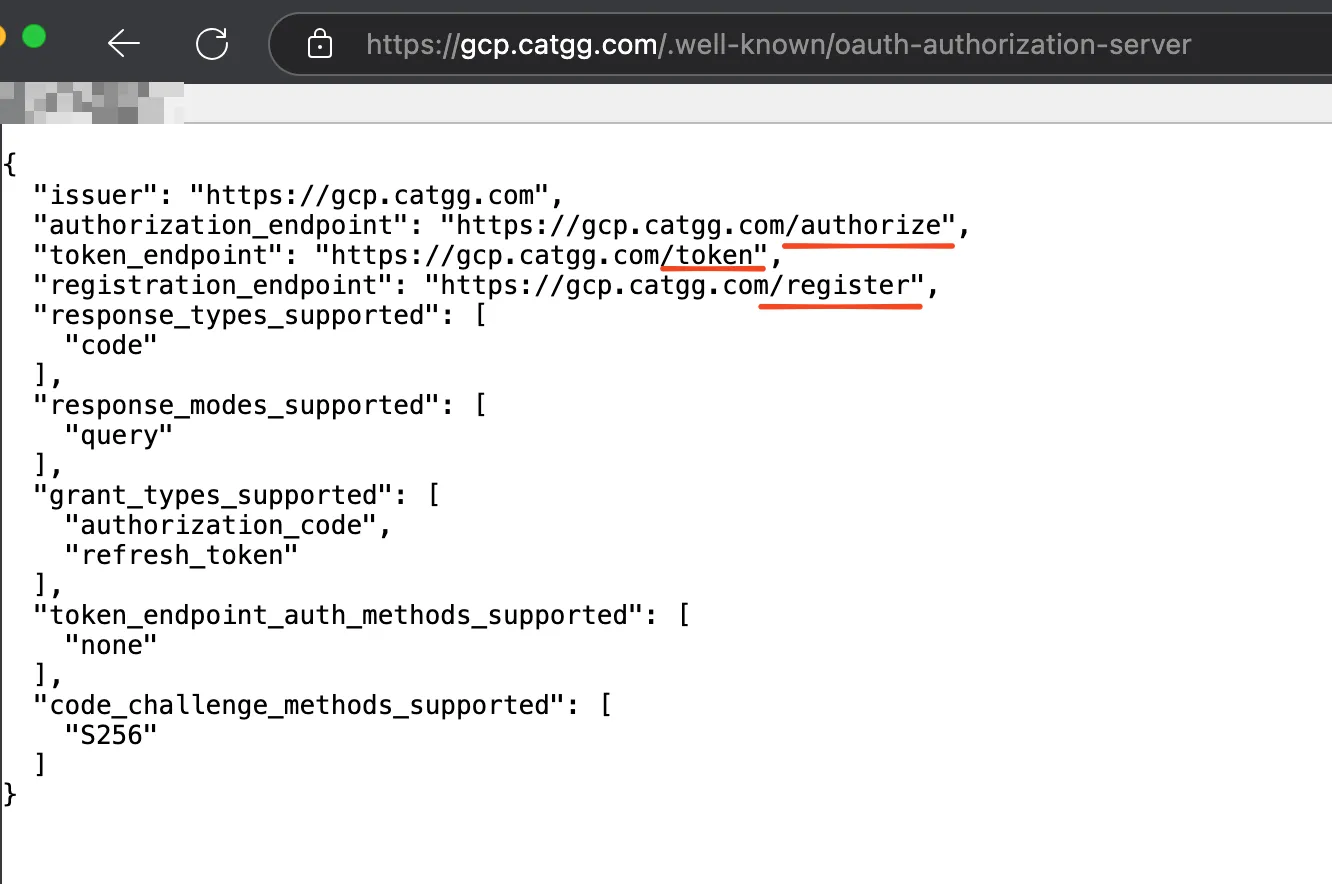 3. Client 发起 /register 请求,实现客户端动态注册,MCP Server返回客户端凭证(Google Cloud 的 CLI AppId 和 Secret 都是公开的)