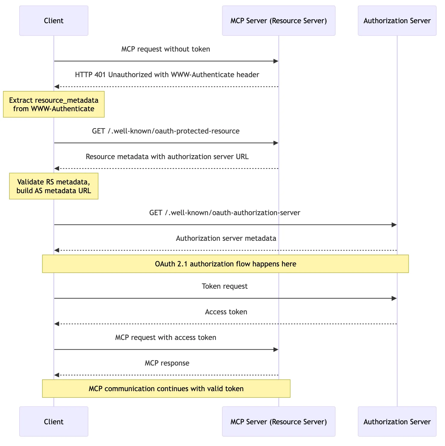 1. Client 向 MCP Server发起 MCP 请求,MCP 响应 401 未授权(图中未标出)
